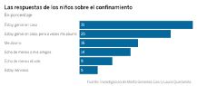 El informe de la Facultad de Psicología de la Complutense revela que también aumentó la apatía e impulsividad. “Debe hacernos reflexionar sobre las dinámicas escolares”, dice su autor. Alba no quiere volver a cole. “Es que estoy mejor en casa con mamá, aquí se aprende muy bien”, explica está niña de seis años. Para Aurora, lo bueno del confinamiento ha sido disponer de su tiempo para “dibujar y jugar” todo lo que ha querido con su hermano, sin los rigores de las extraescolares, las prisas o “sin tener que aburrirse en el recreo largo”. Candela, de nueve años, también tiene alma de homeschooler, los niños que son educados en casa al margen del sistema: “Yo prefiero seguir así, ojalá en septiembre volvamos solo dos días”, le confesó esta semana a su madre Mariló Panadero, que aún se está reponiendo del susto. “Lo bueno es que te organizas como quieres, puedes leer y dibujar hasta hartarte sin que suene el timbre o sin tener que andar corriendo todo el día, y además veo más a mis padres, eso es lo bueno”, concluye Pedro, de ocho años.Sus historias ilustran la investigación Seis semanas de confinamiento: Efectos psicológicos en una muestra de niños de infantil y primaria realizada por las psicólogas especializadas en desarrollo infantil Marta Giménez-Dasí, de Universidad Complutense, y Laura Quintanilla, de la UNED. Esta confirma que las dinámicas escolares pueden resultar tan ansiógenas para los niños y niñas, que los niveles de estrés y ansiedad se han mantenido inalterados o incluso se han llegado a reducir durante el confinamiento en los 167 estudiantes investigados, que tenían de 3 a 10 años. Se trata de una muestra de conveniencia realizada en dos colegios públicos de la zona noroeste de Madrid, en un entorno socioeconómico medio acomodado, un factor crucial a tener en cuenta para interpretar los resultados, pues se les presupone unas comodidades materiales y unas atenciones con las que no todos los niños han contado durante las semanas de encierro. En todo caso, tampoco ha resultado precisamente un camino de rosas para los menores de la muestra el hecho de atravesar una larga situación de emergencia que, según numerosos especialistas, puede acarrear consecuencias negativas en su comportamiento y sus hábitos. Los padres describen en el trabajo de Giménez-Dasí y Quintanilla mayores niveles de hiperactividad y menor disposición al estudio de sus hijos. Sin embargo, las expertas destacan de su trabajo, en el que se tomaron indicadores de la salud mental de los niños en febrero y se volvieron a medir tras seis semanas de confinamiento, una generalizada actitud positiva de los niños sin graves consecuencias psicológicas. Mientras que en los pequeños de tres a seis años apenas hay efectos, en los niños a partir de ocho la especialista considera que “el descenso en el estrés es significativo”. Antes de la cuarentena, los elementos indicadores de estrés y ansiedad se situaban en un 2,35 sobre 5 puntos, tras seis semanas de encierro en casa ese dato bajaba a los 2,16 sobre 5. Además, cuando les permitían describir las emociones que sentían, la respuesta más frecuente (el 31%) es que estaban genial en casa y uno de cada cuatro (25%) relataba que estaba genial en casa aunque a veces se aburría. Mientras que el 16% describía que se aburría y el 14% echaba de menos a sus amigos, solo un 9% echaba de menos el colegio. “Nos sorprendió que las familias que señalan cambios positivos aluden a mejoras en el estado de ánimo y relatan que el niño está feliz o más tranquilo, y describen como ventaja la mayor disponibilidad de tiempo libre para jugar, y valoran el tiempo en familia”, explica la psicóloga Marta Giménez-Dasí. E interpreta que, a medida que crecen, los niños y niñas pueden aumentar sus niveles de estrés por las mayores demandas del contexto